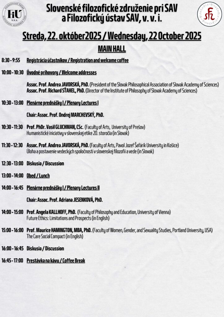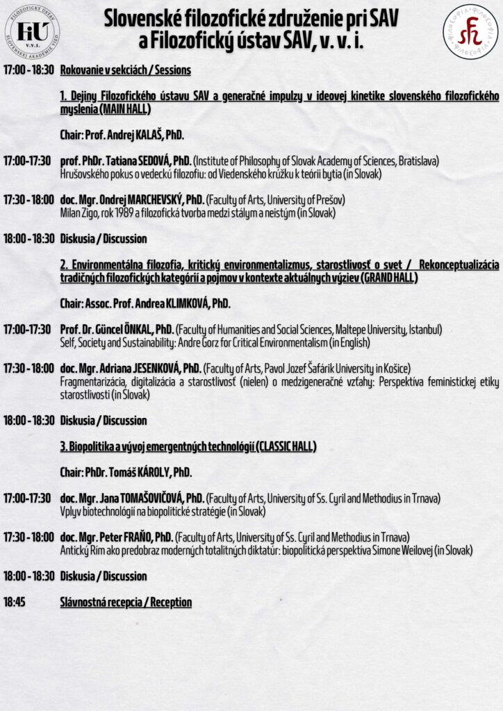 - Otvorenie – príhovory doc. Andrey Javorskej (SFZ pri SAV) a doc. Richarda Sťahela (riaditeľ FÚ SAV).