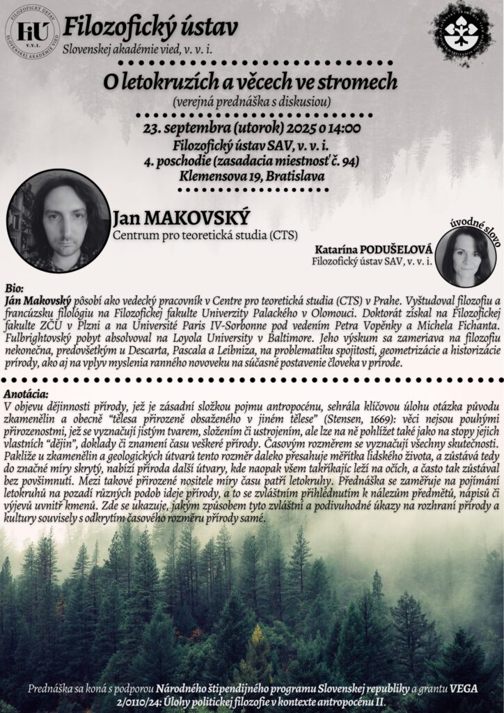 Prednáška sa koná s podporou Národného štipendijného programu Slovenskej republiky a grantu VEGA 2/0110/24: Úlohy politickej filozofie v kontexte antropocénu II.