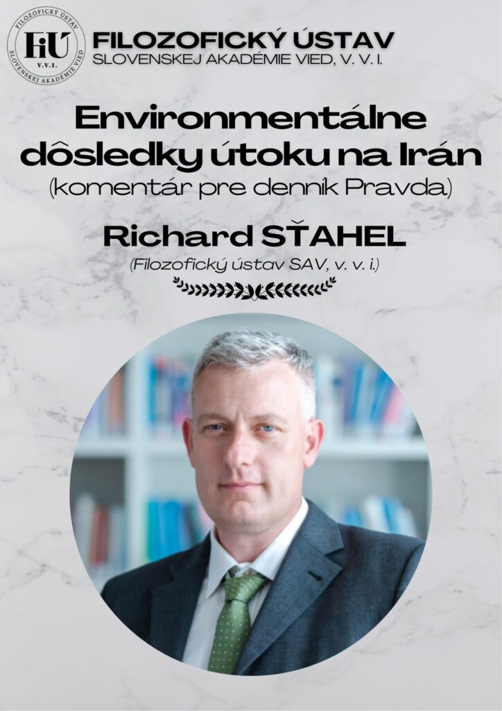Filozofický ústav SAV dáva do pozornosti komentár s názvom „Environmentálne dôsledky útoku na Irán„, ktorý zverejnil denník Pravda (v rubrike Názory) a jeho autorom je riaditeľ ústavu doc. Richard Sťahel (Filozofický ústav SAV).