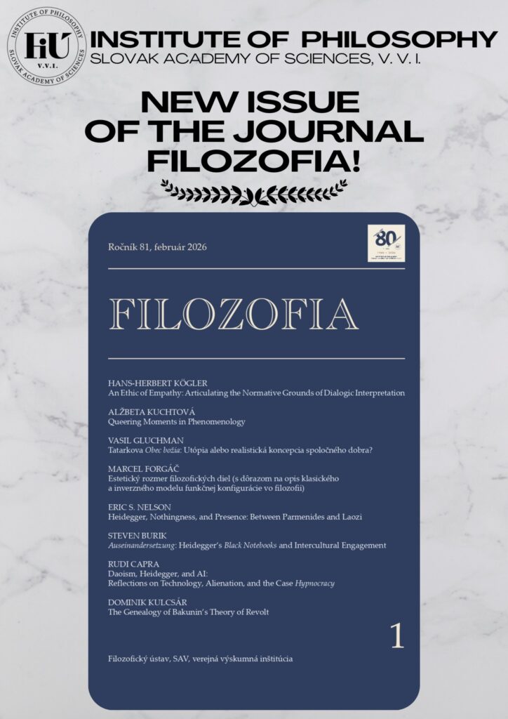 Na webovej stránke časopisu práve vyšlo 1 číslo (február 2026) akademického časopisu Filozofia!