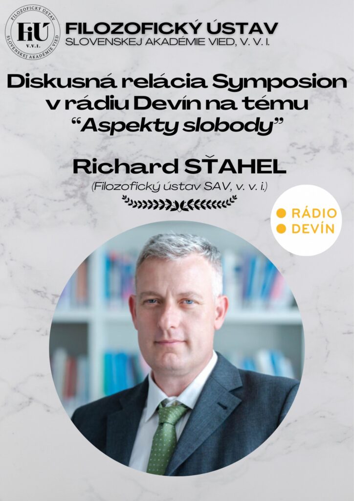 Filozofický ústav SAV dáva do pozornosti diskusnú reláciu Symposion, ktorú vysiela Rádio DEVÍN, s názvom „Aspekty slobody“ s riaditeľom ústavu docentom Richardom Sťahelom (Filozofický ústav SAV).